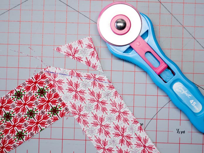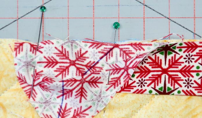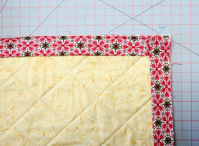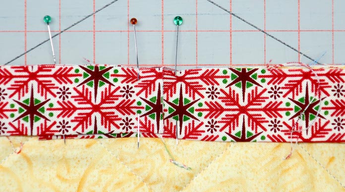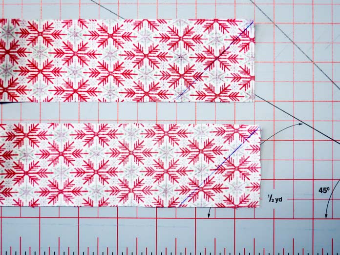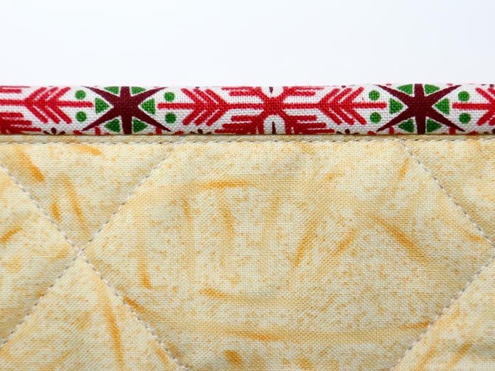 11 easy steps to beautiful binding by Paul Leger October 15, 2021 written by Paul Leger October 15, 2021 666 Welcome to Day Five of this week’s project! Yesterday was all about using Odif 505 Temporary Quilt Basting Adhesive Fabric Spray to baste the quilt. Just remember, when you use Odif 505 to baste quilts of any size, a little goes a long way. One important tool I haven’t talked about this week is an iron. I cannot stress enough the importance of a good iron. The one I use is the Oliso Pro Plus TG1600 Smart Iron. I like the weight, the feel of the handle, and the performance. The one sweet function this iron has that everyone will learn to love is its legs. The moment the handle is released, three small legs push the iron off the ironing surface. When the handle is touched again the legs retrack into the iron and it’s ready to use again. The retracting legs are the reason to use the Oliso Pro, as it reduces the strain on the wrist from always placing the iron on its heel when not in use. Oliso Pro Plus Smart iron I’ll add my binding entirely by machine. The width of the fabric strips I’m using are 2⅛”. The four sides of the wall hanging equal 97”. To get the number of fabric strips I need for the binding, I divide 97″ by the standard fabric width of 42″ – so 97 ÷ 42 = 2.3 strips. I round up and cut three strips at 2⅛” wide, and I’ll cut off the excess at the end. The strips need to be sewn together lengthwise end-to-end, right sides together. I prefer to sew my strips together with a 45o seam. With a 45o diagonal seam, the bulk of the seam is spread over 2⅛”. To make a 45o diagonal seam, draw a diagonal line on the wrong side of both ends of each strip. Note: I used a blue pen for the purpose of taking the photos. Normally I’d use a pencil. Draw a 45o diagonal line at each end of the strips. Place the strip ends right sides together at a 90o angle and sew along the diagonal line. Cut the excess fabric away, leaving a ¼” seam allowance. Sew along the diagonal line and trim ¼” from the seam. Repeat this step until all three strips are sewn together into one long strip. Press all seams open, then fold the binding strip in half lengthwise, wrong sides together, and press the full length. Fold the full length of the binding strip in half lengthwise with wrong sides together and press. When I sew my binding entirely by machine, I start by sewing the binding onto the back first, following these 11 steps: TIP Read all the steps before you start! Line the raw edge of your binding up with a raw edge of the quilt. Start sewing a ¼” seam approximately 5″ from the end of your strip. Start sewing 5″ from the end of the strip. 2. Stop sewing ¼” from the quilt edge (corner). 3. Fold the binding away from the quilt. Fold the binding strip away from quilt. 4. Fold the binding down along the next side of the quilt and sew along the edge with a ¼” Fold the strip down and continue sewing along the quilt’s next edge. 5. Repeat these steps until all four corners of the quilt are bound. Stop sewing about 8″ to 12″ away from where the first seam was started. Stop sewing binding 8″ to 12″ from the start of the first seam. 6. Pin down the section of the strip left unsewn in the first step. Find the diagonal line by opening the binding strip; place a pin where the diagonal line meets the edge of the quilt fabric. Place pin where the diagonal line meets the quilt’s edge. 7. Pin the other end of the strip to the quilt. Overlap with the end of the strip with the 45o diagonal line. 8. Trim the top strip ¼” to the left of the 45o Cut the fabric strip ¼” to the left of the pin that indicates where the diagonal line meets the quilt’s edge. 9. Sew both binding ends together on the 45o diagonal line. Attach both ends of the strips by sewing them, right sides together along the diagonal line. 10. Trim the seam allowance to ¼” and finger press the seam open. Align the edge of the binding with the edge of the quilt; sew it in place. Sew the last section of binding to the quilt. 11. Fold the binding to the front of the quilt. Using Heirloom QUALITY Clever Clips Small – 60 Piece, clip the binding in place. Sew along the edge of the binding. Sew along edge of binding. Sewing along the edge of the 2⅛” strips pretty much guarantees the seam will be parallel to, and not on, the binding. The binding seam runs parallel to the binding. The Christmas wall hanging is now complete. Completed Christmas wall quilt. It was a fun week playing with all the Odif products. Odif 808 Spray and Fix Temporary Adhesive for Paper Patterns, Odif 606 Spray and Fix No-sew Fusible Adhesive Web, Odif 505 Temporary Quilt Basting Adhesive Fabric Spray, Odif 404 Spray and Fix Permanent Repositionable Adhesive for Craft Material, Odif DK5 Adhesive Cleaner, and Odif DK5 Adhesive Cleaner made easy work of the Christmas wall hanging I made, and I would never complete a project without the help of my Oliso Pro Plus TG1600 Smart Iron and Heirloom QUALITY Clever Clips! I recommend you try out these products yourself – they’re so easy to use! Odif adhesive sprays and cleaning agent This is part 5 of 5 in this series Go back to part 4: How to use Odif 505 to make quilt basting quick and easy Print this page or save as a PDF 0qs385free patternsgutermannGütermann 7-pc MCT Sew-all 100m Thread Set – ChristmasHoliday wall hangingKomfort KUT Ruler CutternotionsOdifOdif 404 Spray and Fix Permanent Repositionable Adhesive for Craft MaterialOdif 606 Spray and Fix No-sew Fusible Adhesive WebOdif 808 Spray Fix Temporary Adhesive for Paper PatternsolisoOliso M2Pro Mini Project IronOliso Pro TG1600 Smart Ironquiltsthreadstutorials FacebookTwitterPinterestLinkedinRedditWhatsappTelegramEmail Paul Leger I took my first quilting course in September 1994 in Barrie, Ontario, near the armed forces base where I was stationed. After moving to Ottawa in 1996, I joined my first guild. I took more co