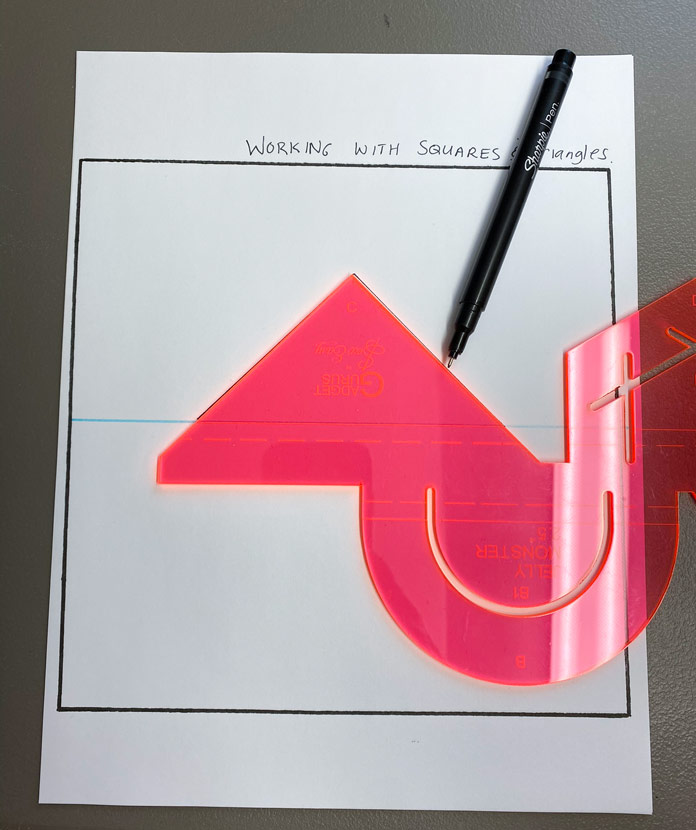 2 great template sets you need for impressive free motion quilting by Robin Bogaert December 10, 2021 written by Robin Bogaert December 10, 2021 754 All week I’ve discussed free motion designs that quilters need to draw out, and yesterday, we learned how to plan out and free motion quilt 3 nature-inspired designs. The good news with today’s post, is we can use templates and freezer paper to assist with the drawing process using the Sew Easy Jelly Monster Template and the Sew Easy 9pc Circle Template Set, along with Sew Easy Freezer Paper. These tools will make your sewing quilting projects so much easier. The Sew Easy 9pc Circle Template Set In the Sew Easy 9pc Circle Template Set, templates range in size from 1” to 5”. I’ll start with the circle templates. I used the 2½” circle from the 9 templates (a great value) to design the ‘Orange Peel’ quilting pattern. I drew a 2” grid within a 10” square as shown. I then made sure the edge of the template met the intersections of the grid and used the template to mark my orange peel sections. These templates are great because they’re made in such a bright color that is easy to see, they’re see-through and have vertical, horizontal, and 45-degree lines marked on them making them great for centering. The number of sizes available also makes them great for applique. Using the 2½” circle template to make an orange peel design for free motion quilting Quilting the orange peel design using a serpentine direction to make the design continuous The finished orange peel design completed with Gütermann Sew-all Thread in Burgundy These circle templates ranging in size from 1” to 5” are also useful for drawing out appliques and background quilting designs…the possibilities are endless. Another idea for using the Sew Easy 9 piece Circle Template Set – Applique and Quilting Designs The Sew Easy Jelly Monster Template is useful to draw out shapes and cut from strips of fabric folded in half, or 2½” jelly roll strips sewn together. Again it’s made in the pink clear durable acrylic with clear markings for 2 sizes of circles, 2 sizes of hexagons, a diamond, a square and 2 sizes of triangles. See the package instructions below. Jelly Monster Template – a very useful template to draw shapes for free motion quilting as well as for cutting fabric applications Back of package and instructions for the Jelly Monster Template – great for cutting jelly rolls and for use as a drawing tool for free motion quilting I used the Jelly Monster Template today to draw triangle, square and hexagon shapes. A template like this has so many uses and limitless possibilities. I drew out a square with it, as shown. Drawing the top of the square with the Jelly Monster Template Drawing the bottom of the square with the Jelly Monster Template Designing a feather shape within a square Designing a feather shape within a square Designing a feather shape within a square – top is complete Designing a feather shape within a square – bottom is complete Square shape is quilted with Gütermann Metallic Thread Drawing a triangle shape with the Sew Easy Jelly Monster Template Place ½” and 1” marks with a UNIQUE Sewing Blue Wash-out Marker to use as guidelines for quilting Sew Easy Jelly Monster Template, SCHMETZ Quilting Needles, Gütermann Thread and UNIQUE Sewing Wash-out marker make great free motion quilting possible Ready for an extreme challenge? Try drawing a hexagon shape with the Jelly Monster Template to create a paradox design by marking ¼” all around the hexagon with a UNIQUE Sewing Wash-out Marker, as shown. Then sew from ¼” mark to ¼” mark with a controlled, slow and straight free motion quilting line, as shown. Drawing out a hexagon with the Jelly Monster Template Adding ¼” increments to sew a line from ¼” to ¼” on the hexagon Quilting the paradiox design The Paradox, Challenge Design quilted with Gütermann Sew-all Thread in Teal Sew Easy Freezer Paper, great for appliques and marking for free motion quilting Freezer paper can assist with all kinds of quilting projects including applique, for tracing designs and shapes. I use it frequently to draw out a quilting design on the matte side ahead of time, and place it directly on a quilt. I then iron it to the quilt (wax side) to the fabric for temporary adhesion, and then sew right on top of the design. It eliminates the step of transferring the design to fabric, saving time. These steps are shown below. Design marked onto freezer paper and ironed to the right side of fabric Design quilted onto the freezer paper Peeling off the freezer paper Freezer paper design completed How to make potholders from free motion quilting practice samples Square your practice sample down to 10” x 10”. Fold the pre-cut 10” x 10” fabric in half, wrong sides together. Place a piece of Velcro hook towards the folded side centered by measuring 4½” up from the raw left side and bottom, as shown. Pin the Velcro in place and sew. Measuring the pocket for the Velcro 4. Measure up the same way on the backside of the quilted sample, and place the loop of the Velcro. Pin and sew, as shown. Measuring the Velcro for the quilt practice sample 5. Matching Velcro and raw edges, sew the pocket piece to the back of the quilted practice sample with a ⅛” seam allowance along the sides and bottom. Lining up the Velcro and raw edges ready for basting 6. Bind as desired. For help with binding, check out this free quilt binding tutorial. 7. To add a hanging tab, cut a 2” x 6” piece of corresponding fabric and fold it in half lengthwise wrong sides together. Sew along the length, turn it to the right side, then press and sew it to the left corner backside of the potholder. Loop tab added to the back of the potholder 8. Add a recipe or candy to the back pocket (optional). Adding a recipe and candy to the potholder pocket Front of potholders Back of potholder shows off the seasonally beautiful F