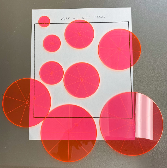 These circle templates ranging in size from 1” to 5” are also useful for drawing out appliques and background quilting designs…the possibilities are endless.