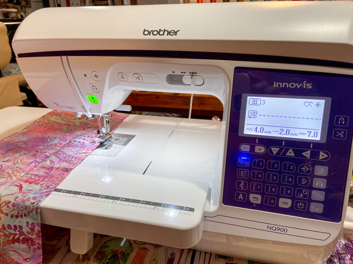 Yesterday on QUILTsocial we made the large pocket sections to hold all the packages of hand embroidery needles in our embroidered needle roll. Today I’ll use my Brother NQ900 to secure these pockets to the interfaced layer we made on Tuesday , and tomorrow we can finish and start filling up our needle roll.