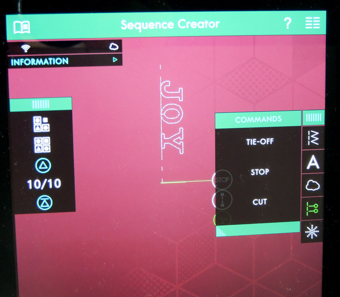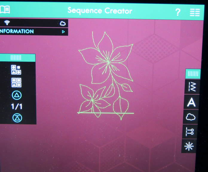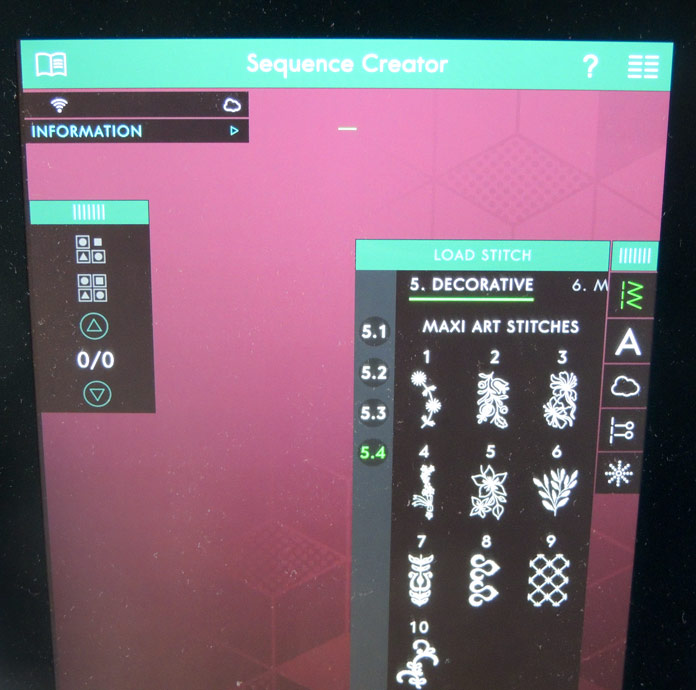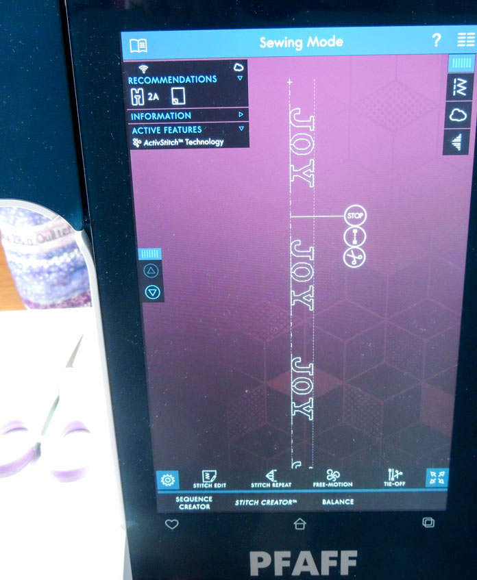 Creating your own designs on the PFAFF performance icon Sequence Creator by Sarah Vanderburgh October 27, 2021 written by Sarah Vanderburgh October 27, 2021 602 The holiday season brings out the creativity and desire to make handmade gifts and decor items. In yesterday’s post, we used built-in decorative stitches on the PFAFF performance icon to cover the edges of four of the fused stockings for the holiday stocking banner. Today, we’re creating our own designs on two solid cream stockings using the Sequence Creator program. The Sequence Creator program is built into the PFAFF performance icon and lets you create a sequence of stitches, including any from the 6 built-in fonts. Command menu opened in the Sequence Creator program I intentionally picked plain cream fabric for two of my stockings because I wanted to take advantage of the many built-in stitches on the performance icon to create my own stocking designs. You can see the large selection of stitches by checking out this stitch chart. All of the stitches can be viewed in the stitch menu on the Multi-Touch Screen. Once you finish creating a sequence, which may include the stop and tie-off commands, you load it into the sewing mode. The sequence will display at full size on the Multi-Touch Screen with the commands included. Sequence displayed in Sewing Mode on the Multi-Touch Screen For the sequences I created to put on the stockings, two different presser feet are recommended. Both foot 2A and 8 work without attaching to the IDT System which makes sense, because to stitch these stitches the needle has to move in different directions. Presser Foot 8 and 2A To stitch out the sequence inside of the area of the cream solid stockings, I added the fusible webbing to the back of the cream fabric, but didn’t cut out the stocking. Instead, I added a layer of INSPIRA Fast & Easy Tear-A-Way Light under the fusible, and lined up the stocking outline inside the stitching area. I placed the fabric with the stocking sideways under the needle, so the words would stitch out across the stocking. I kept the machine’s overall speed low and used the Start/Stop button to let the machine stitch automatically – I just guided the fabric under the needle. On the first cream solid stocking, I stitched out the word JOY across the top. Then I wanted to recreate the idea of stitching at the ankle and remembered how much fun the Radiant Stitches are on this machine! I loved making the baby quilt full of radiant stitches and decided to add one that reminded me of trees to the heel of this stocking. It had been a while, so I was glad to have the how-to instructions right on the screen to follow. To keep going in the instructions, I just touched the screen and scrolled. On-screen instructions for Radiant Stitches The Radiant Stitch follows a curve then automatically stops so you can turn the fabric for the stitches to continue behind the presser foot. In the photo below, you might be able to see the outline of my fusible on the reverse side of the fabric. Stitching out the Radiant Stitch To mark the curved line, I used the UNIQUE SEWING fast fade marker pen. Fast fade marker pen used to draw the curved line With the first cream solid fabric stocking ready, I turned to the Maxi art stitches to help me create the second one. This large floral stitch is one of my favorites and really sings of the holidays to me. I first selected the Sequence Creator so that I had control of stitching the motif just once. I picked stitch 5 on the menu below, but you can see there are several large stitches that have just as much impact on a project. Maxi Art Stitches menu in the Sequence Creator I thought it was really fun that when the stitch loaded it appeared in lime green on my burgundy screen – how festive! Maxi Art Stitch in Sequence Creator The final step today is to cut out these two stockings. The Sequence Creator program on the PFAFF performance icon really allowed me to personalize this stocking banner. Come back tomorrow to see what my stockings look like! This is part 3 of 5 in this series Go back to part 2: Make your holiday jolly with this machine applique stocking banner Go to part 4: Choosing a machine quilting stitch to complement background fabric Print this page or save as a PDF 0qs387free motion quiltingfree patternsGÜTERMANN threadsholiday bannernotionsperformance iconpfaffquilting techniquesquilting tutorialssewing machine reviewsthreadsUNIQUE sewing FacebookTwitterPinterestLinkedinRedditWhatsappTelegramEmail Sarah Vanderburgh I love to play with color and *quilts* are my playground! A self-taught quilter, I've been designing quilts for almost 20 years. I'm inspired by happy fabrics, selvages, traditional blocks and nature. I'm also a wife, mother, and elementary school teacher, and enjoy drinking coffee on my front porch in northern Ontario. previous post Make your holiday jolly with this machine applique stocking banner next post Choosing a machine quilting stitch to complement background fabric YOU MAY ALSO LIKE... Stitch in the ditch AND grid quilting with... On-point quilting: Where to start with cutting and... Create or edit your stitches with the PFAFF... Creating custom stitched fabric is FUN with the... More is more with a quilted maximalist cushion... A two-panel backing completes the quilted ‘Sunshine’ cushion... A FUN way to blanket stitch with the... Stippling with different size stitches is OK [Defining... The ‘Radiant Stitch’ on the PFAFF performance icon:... Leave a Comment Cancel Reply Save my name, email, and website in this browser for the next time I comment. Δ This site uses Akismet to reduce spam. Learn how your comment data is processed.