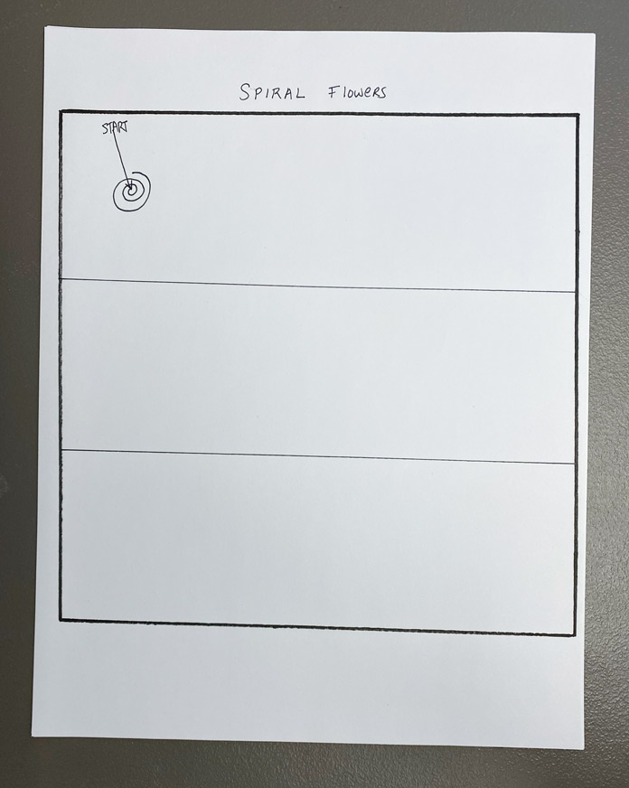 Complete the entire page to train the brain for quilting on an actual practice sample (recommended). See my page below and spiral drawing number by number.