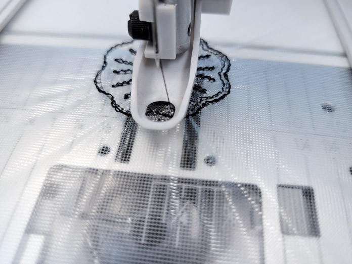 I’m using the same embroidery design. We can already see from the beginning that this water-soluble stabilizer provides enough support to prevent distortion, and it won’t get cut away.