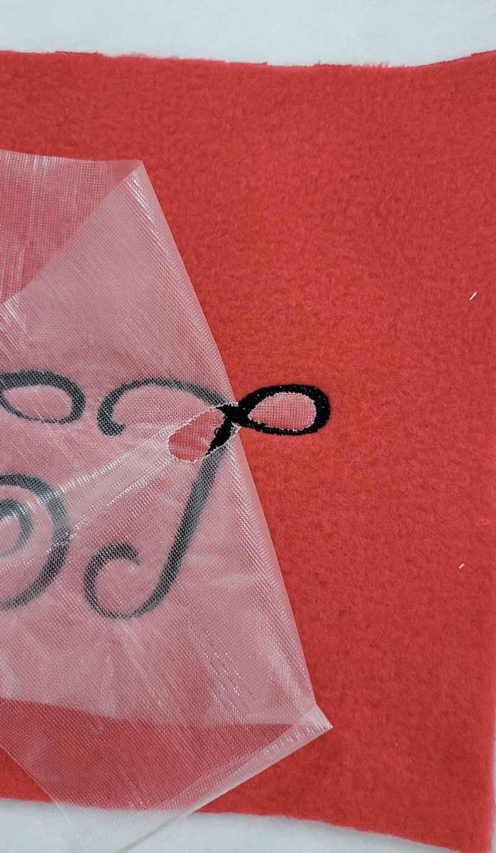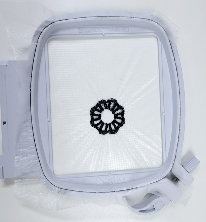 Notice how the water-soluble film didn’t detach from the design like it did when it was the only stabilizer I used. It’s easy to tear the excess away.