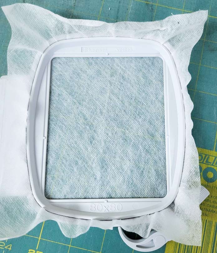 This time, I’m using the Inspira Aqua Magic water-soluble stabilizer, which resembles a non-woven fabric.