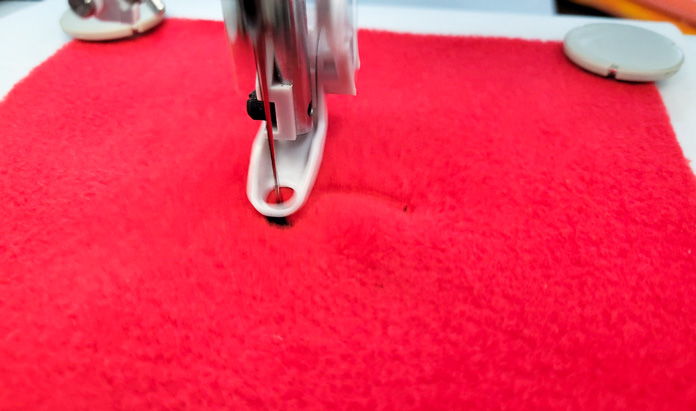 Even though we don’t think of fleece as having a deep pile, it does, especially when it comes to embroidery, so choose a large design to show on the fleece.